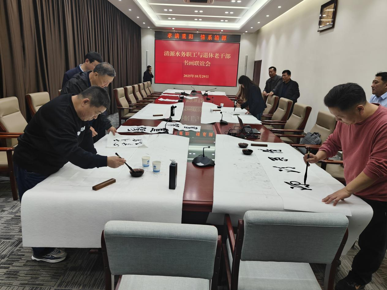 活动第二站,来到聚源公司文山泵站开展书画联谊活动,活动室内墨香四溢,长桌铺展,宣纸备齐,公司书画爱好者与老同志们一同挥毫泼墨,即兴创作。大家写下对企业和生活的感悟,既展现了清源人对文化的热爱,亦营造了和谐融洽的交流氛围。